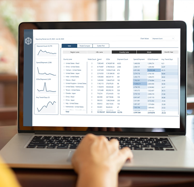 Verfolgen und vergleichen Sie Ihren CO₂-Ausstoß bei allen Luftfrachtsendungen, Voll- (FCL) und Teilcontainerladungen (LCL) im Zeitverlauf. Erreichen Sie damit Ihre Nachhaltigkeitsziele in der Lieferkette.