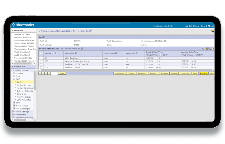 Obtenga las tarifas de camiones de C.H. Robinson en tiempo real directamente en Blue Yonder