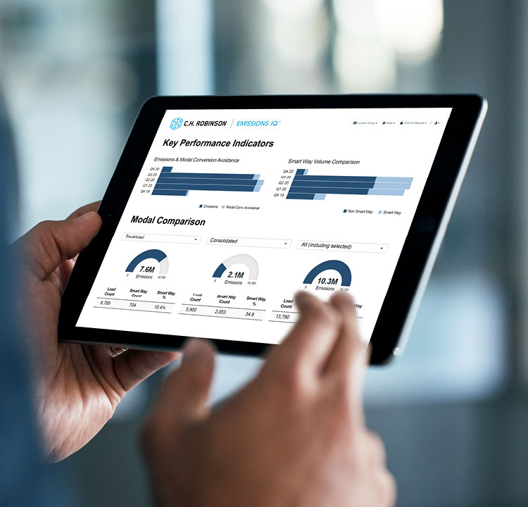Mida, compare y reduzca su huella de carbono con Emissions IQ™, nuestra tecnología fácil de usar y de autoservicio que calcula y visualiza las emisiones por modo, ubicación y minorista.