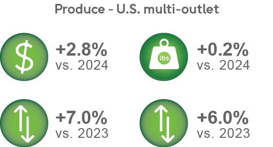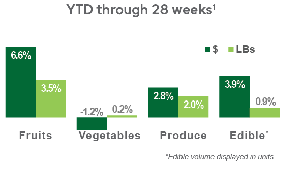 • Year-to-date performance: Produce dollar sales are up 2.8%, accompanied by a 2.0% rise in volume compared to the same period last year