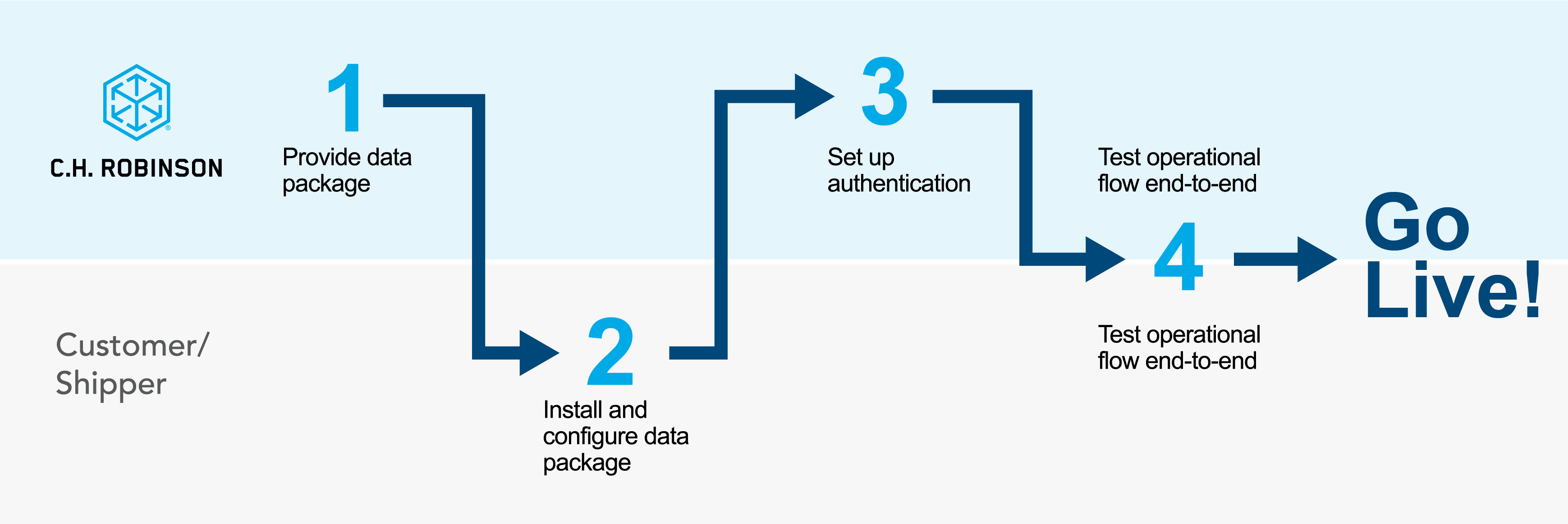 您无需进行任何前期开发,只需几周的时间,即可完成 Dynamics 365 与 C.H. Robinson 的集成。